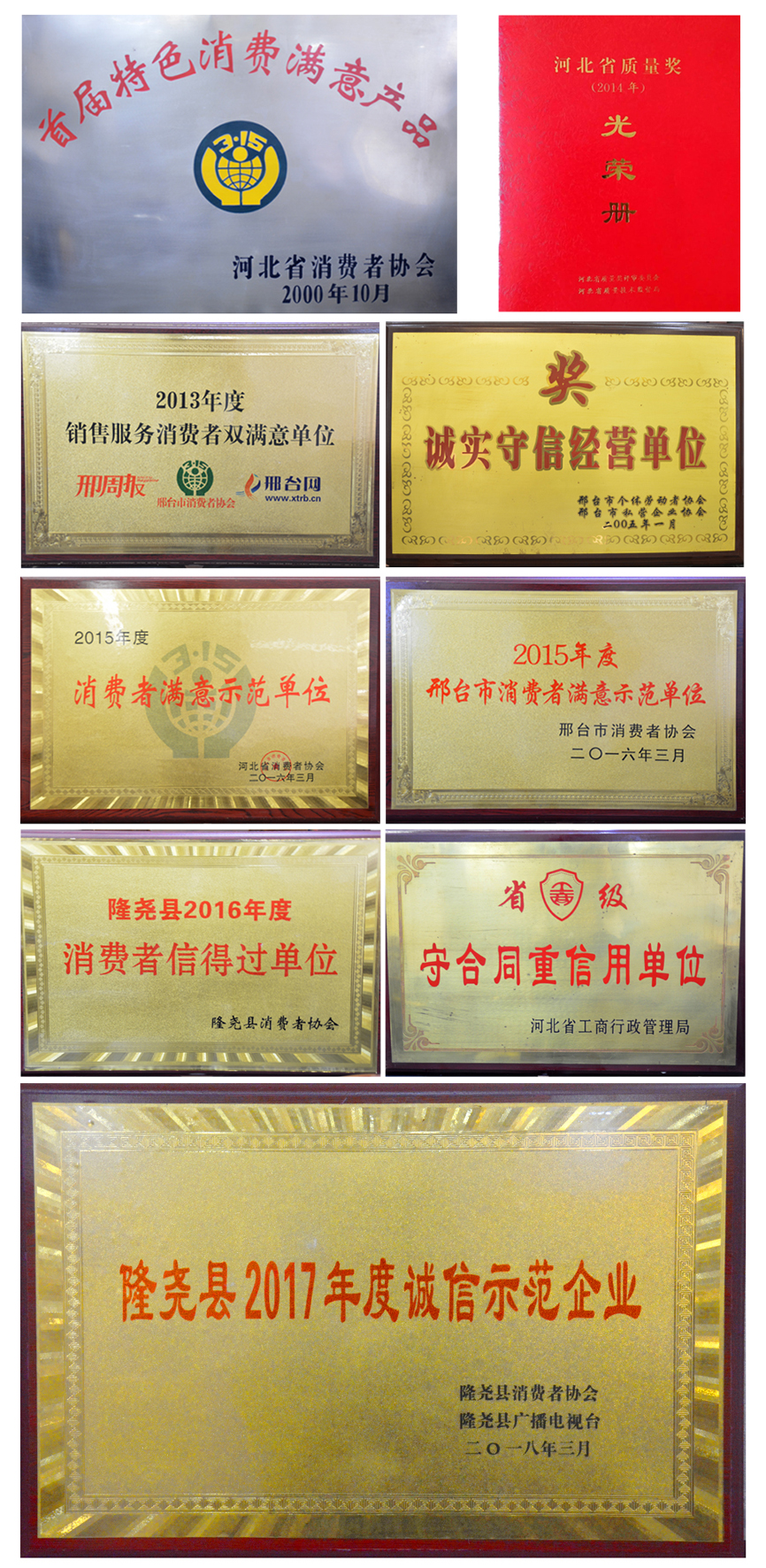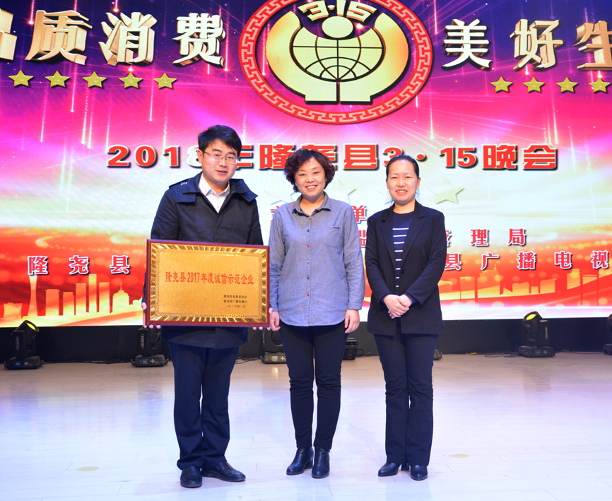 會上,發(fā)布了消費警示,質(zhì)量抽檢通報,并對群眾投訴名單進行了曝光。隨后對誠信經(jīng)營企業(yè)做出表彰。期間播放了青龍劍釘業(yè)宣傳片,并為企業(yè)頒發(fā)了“隆堯縣2017年度誠信示范企業(yè)”獎牌。